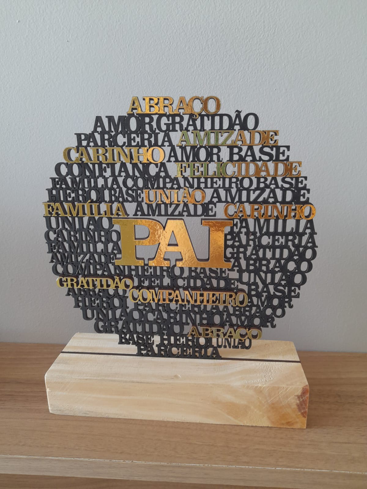 Troféu PAI em MDF com Base de Pinus - 1 unidade